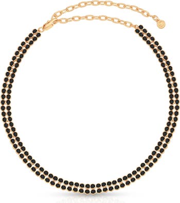 A layered silhouette gives twice the shine to this tennis choker necklace.