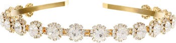 Crystals cluster in floral formations on this sparkly headband sure to add to the fancy factor of any ensemble.