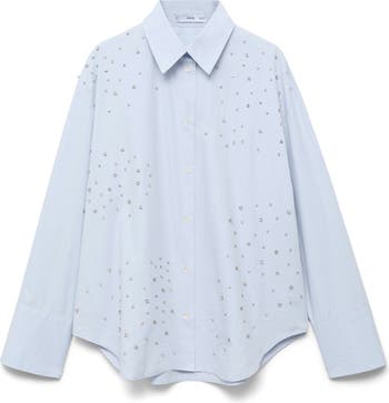 Sparkling crystals add unmistakable glamour to this woven cotton shirt that's a workwear style staple.
