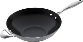 The Scanpan CTX 12.75-Inch Wok is perfect for stir-frying, sautéing, and high-heat cooking. Made in Denmark, it features a nonstick interior, stainless steel exterior, and is induction compatible and oven safe to 500°F.