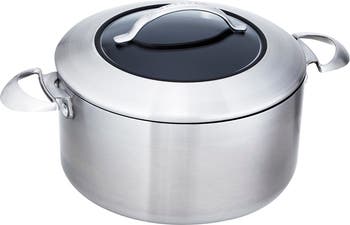 The Scanpan CTX 7.5 Quart Dutch Oven with Lid is perfect for large meals, soups, and slow cooking. Made in Denmark with a nonstick interior and stainless steel exterior. Suitable for all stovetops including induction, and oven safe up to 500°F.