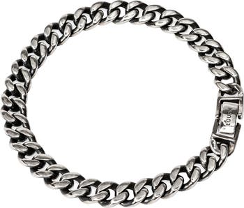 Show your style with our signature Cuban Chain Bracelet. Crafted from sterling silver, its rounded links drape comfortably around the wrist. The fold-over clasp honors our grandfather, a watchmaker, while the polished and darkened finish makes this 7mm chain a timeless everyday staple.