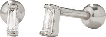 Baguette-cut cubic zirconia bring a wink of understated shine to these dainty stud earrings.