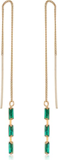 Vibrant baguette stones illuminate the modern, minimalist design of these dainty threader earrings.