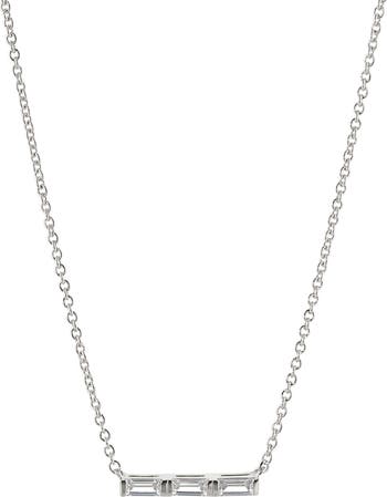 A collection of baguette-cut cubic zirconia create a sparking bar pendant in this stackable polished necklace.
