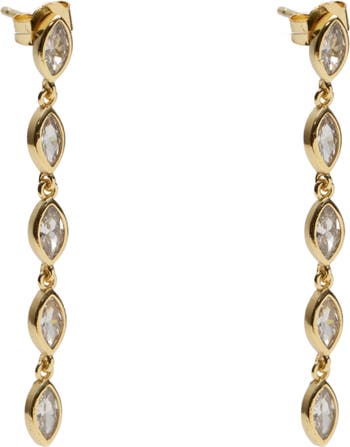 Marquise-cut cubic zirconia in bezel settings bring eye-catching sparkle to these linear drop earrings plated in polished 18-karat gold.