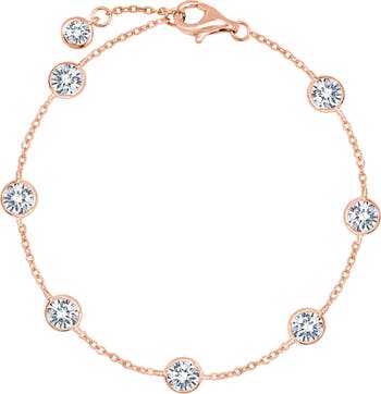 Hand-set cubic zirconia bezels station this delicate chain anklet plated in 18-karat rose gold.