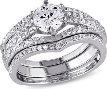 Cubic Zirconia Bridal Ring Set Sterling Silver
