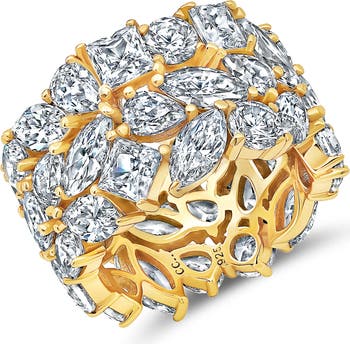 An assortment of hand-set cubic zirconia brings scintillating sparkle to a glamorous ring plated in high-shine platinum or 18-karat yellow gold.