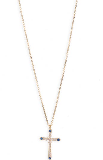 Contrasting cubic zirconia add rich color and sparkle to this cross pendant necklace.