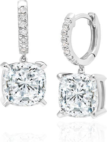 Add glistening sparkle to your lobes with elegant drop earrings featuring cushion-cut cubic zirconia suspended from pavé rings.