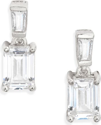 Rectangular stones sparkle on these stunning drop earrings that exemplify modern elegance.