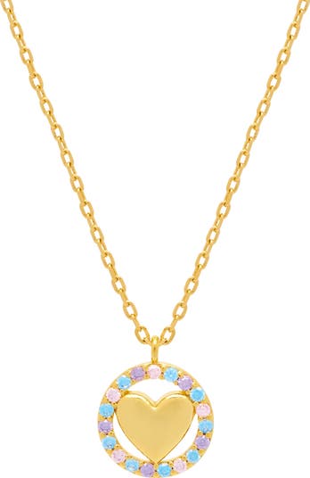 Go for heart in this dainty pendant necklace featuring a halo of cubic zirconia.