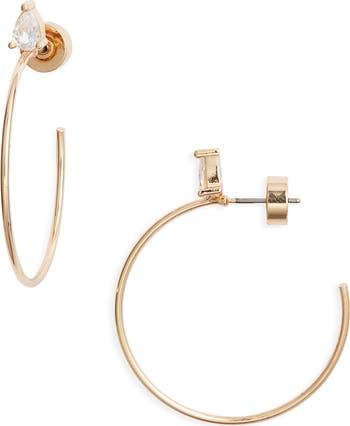 Pear-cut cubic zirconia stones add the perfect touch of shimmer to these contemporary-chic wire hoop earrings.
