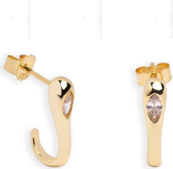 Argento Vivo Sterling Silver Cubic Zirconia J Hoop Earrings, Main, color, Gold