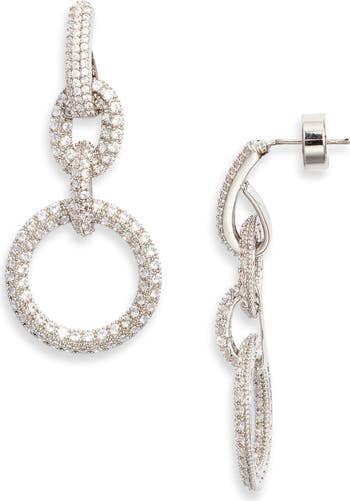Pavé cubic zirconia illuminate these glamorous interlocking-link drop earrings boasting a polished platinum finish.