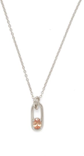 A sparkly oval cubic zirconia nestles within a polished link on a handcrafted pendant necklace plated in gleaming 14-karat gold or sterling silver.