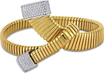 Cubic Zirconia Omega Folded Bangle Two-Tone