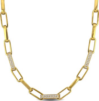 Cubic Zirconia Paperclip Link Necklace 14k