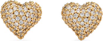 Easy-to-love earrings are heart-shaped and covered in sparkling cubic zirconia pavé.