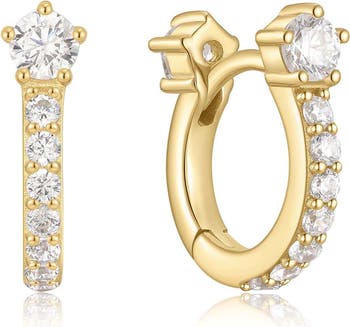 Sparkling and timeless, these dainty huggie hoops are adorned with glimmering pavé cubic zirconia.