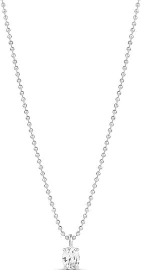 This hand-polished necklace displays the perfect balance of texture and sparkle with a ball chain and oval-cut cubic zirconia pendant.