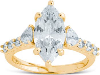 A marquis-cut center flanked by graduated cubic zirconia stones down the band distinguish a polished ring that brings shimmer and shine to elevated stacks.