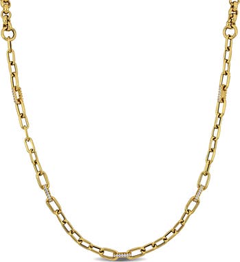 Cubic Zirconia Rolo & Rectangle Link Necklace 14k