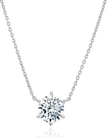 A brilliant-cut cubic zirconia pendant held in a six-prong hand setting creates stunning sparkle on this polished chain necklace.
