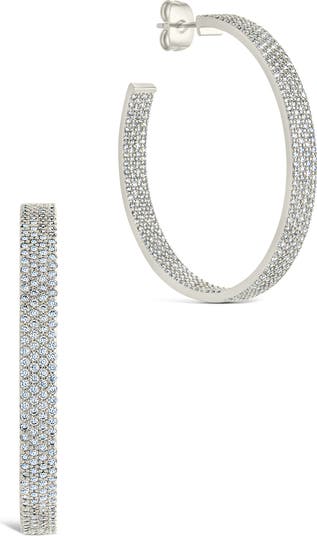 Add stunning sparkle to your ensemble with these striking hoop earrings lined with round cubic zirconia inside and out.