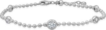 Bezel-set cubic zirconia stations bring the twinkle to this sterling silver ball-chain bracelet plated in polished platinum.