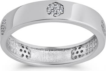Flush-set cubic zirconia create islands of shine along this polished band ring crafted from sterling silver.