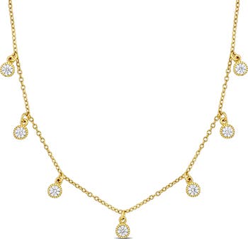 Cubic Zirconia Station Necklace Sterling Silver