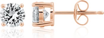 These essential stud earrings are hand-set with brilliant-cut cubic zirconia and plated in 18-karat rose gold.