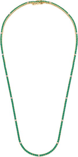 Add a lustrous accent to your neckline with this radiant tennis necklace plated in 18-karat gold and hand set with clear and colorful cubic zirconia.
