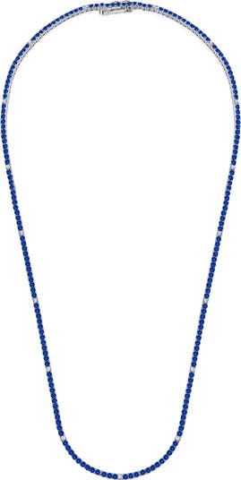 Add a lustrous accent to your neckline with this radiant tennis necklace plated in platinum and hand set with clear and colorful cubic zirconia.