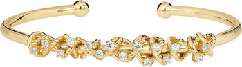 Cubic zirconia twinkle amongst the set links at the front of this elegant cuff plated in warm 14-karat gold.