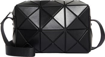 An array of triangles atop flexible mesh adds signature dimension and space-age futurism to this cube-shaped bag with a strap that adjusts for various carrying options.