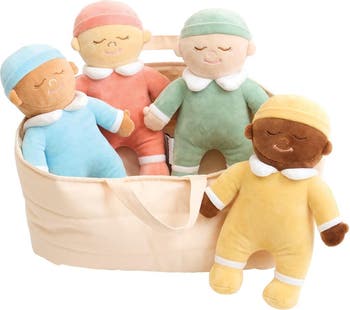 Birth and up. Foster comfort, calm, and companionship with this set of Cuddle Dolls. These soft, lightweight dolls are the perfect size for little ones who need a snuggle buddy or a friend. In addition to improving their well-being, the dolls will introduce infants to early forms of companionship that can lay the groundwork for caring human relationships when they get older. Dolls measure 10"H.