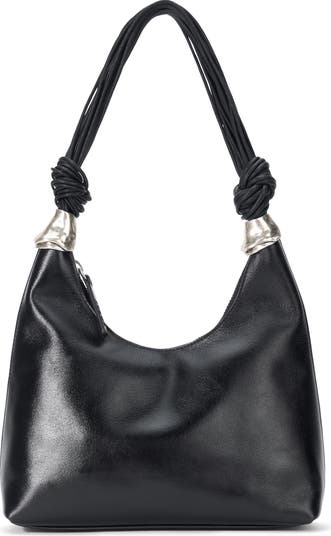 Supple leather shapes a softly slouched bag accented with sculptural metal cuff hardware and featuring a roomy interior perfect for storing your on-the-go essentials.