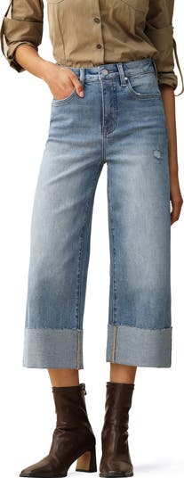Designed to be worn with a single cuff, these raw-hem jeans feature cropped wide legs and a faded medium wash that's casual and versatile.