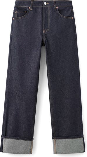 A relaxed look for casual days, these nonstretch jeans have full-length straight legs with wide cuffs that add a polished detail.