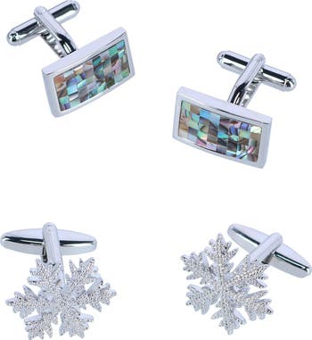This limited time value pack of our Let It Snow Snowflake cufflinks and our Walken Mother of Pearl Cufflinks makes this a great gift to grab for that hard to buy for gentleman on your list. The color and sparkle add an element of elegance to any suit or tuxedo for all your events this holiday and winter season. Great for weddings, graduations, holiday parties, New Year's Eve, along with a night out on the town. Do not let this limited time special pass you by. Mother of Pearl cufflinks measure 3/4 x 3/4 of an inch. Snowflake cufflinks measure 7/8 x 7/8 on an inch.