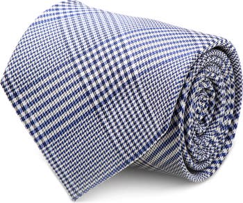 A handsome glen plaid in shades of blue and white brings easy versatility to a tie crafted for distinction from pure silk.
