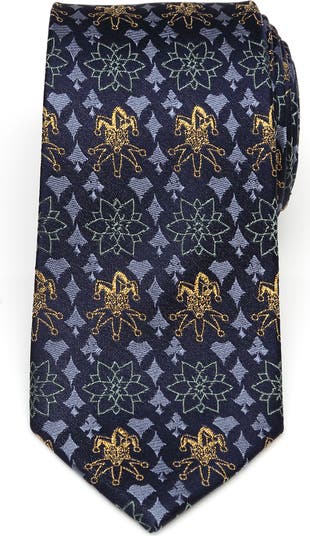 The Joker's emblem and the Joker's acid-spewing flowers cover a pure silk tie perfect for adding a touch of villainous sophistication to your ensemble.