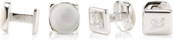 Polished sterling silver and fine mother-of-pearl define a set of charming formal shirt studs.