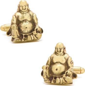 A well-sculpted Buddha figure tops charming cuff links with eye-catching appeal.
