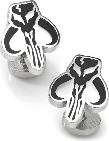 Add some nerd cred to your formal looks with these rhodium-plated cuff links featuring the skull sigil of the legendary mythosaur of Mandalore.
