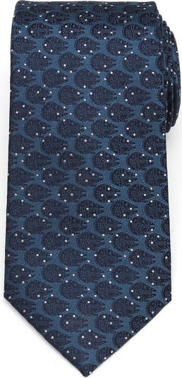 Bring your closet to hyperspace with this silk tie slyly patterned with Millennium Falcons zooming through star dot clusters.