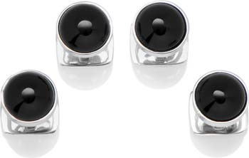 Sleek onyx inlays define fine shirt studs fashioned from sleek stainless steel.